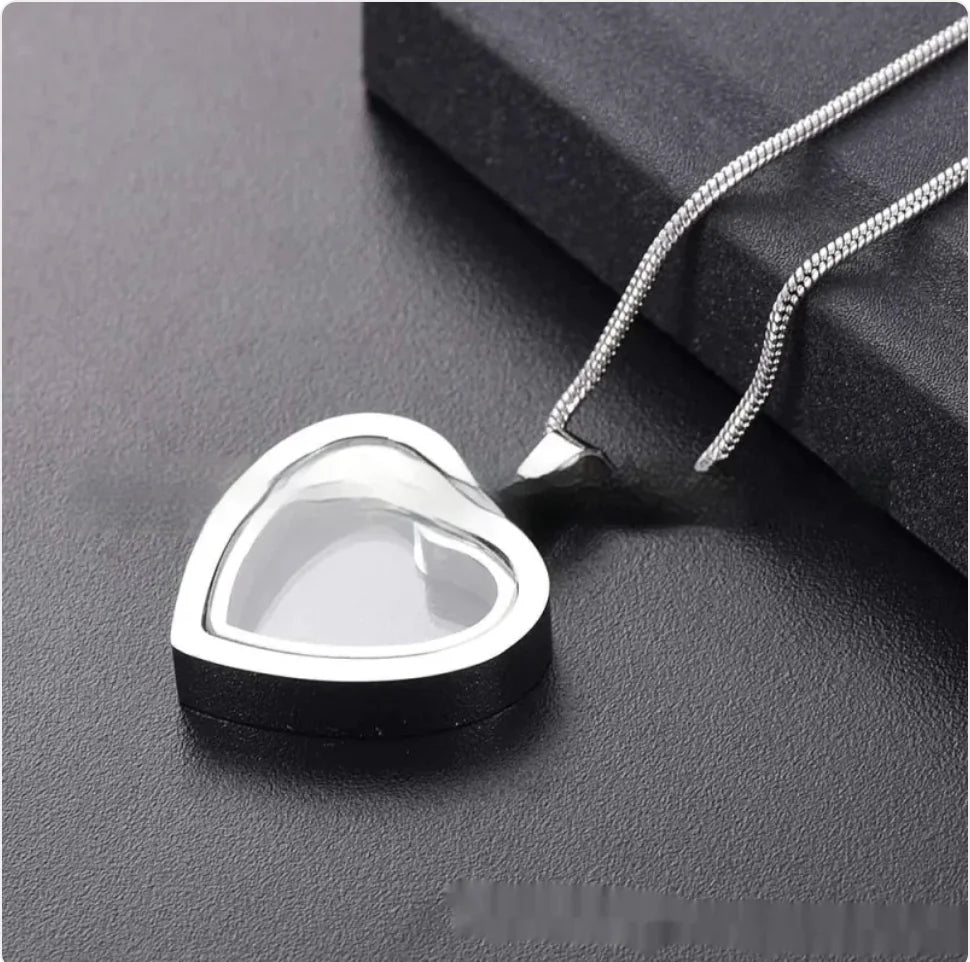 This elegant heart-shaped necklace features a minimalist design, perfect for keeping loved ones close. You can open it and insert contents from the bottom. Available in multiple finishes to suit any style, it is crafted with durable stainless steel for lasting wear.